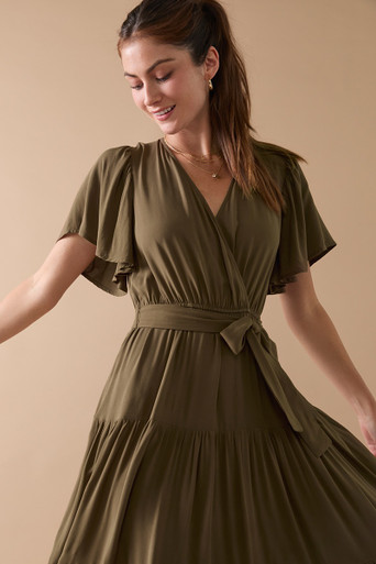 Flutter Sleeve Midi Wrap Dress