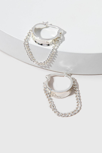 Loose Chain Hoop On Thick Huggie Silver Earrings